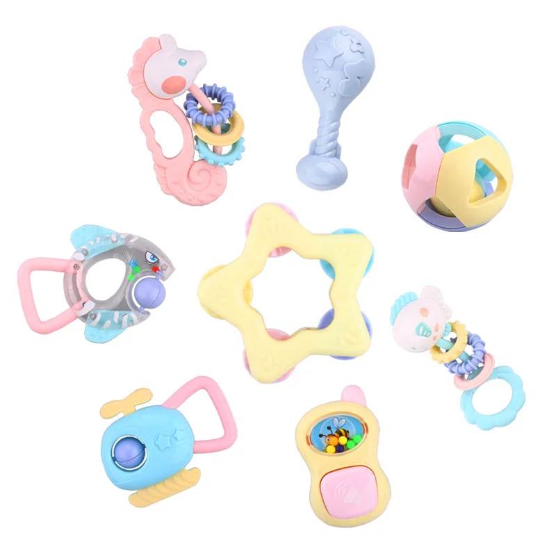 8pcs/set Teether rattles Baby toys for teeth Toddler catching ball Infant bell Crawl Grasp to be bo
