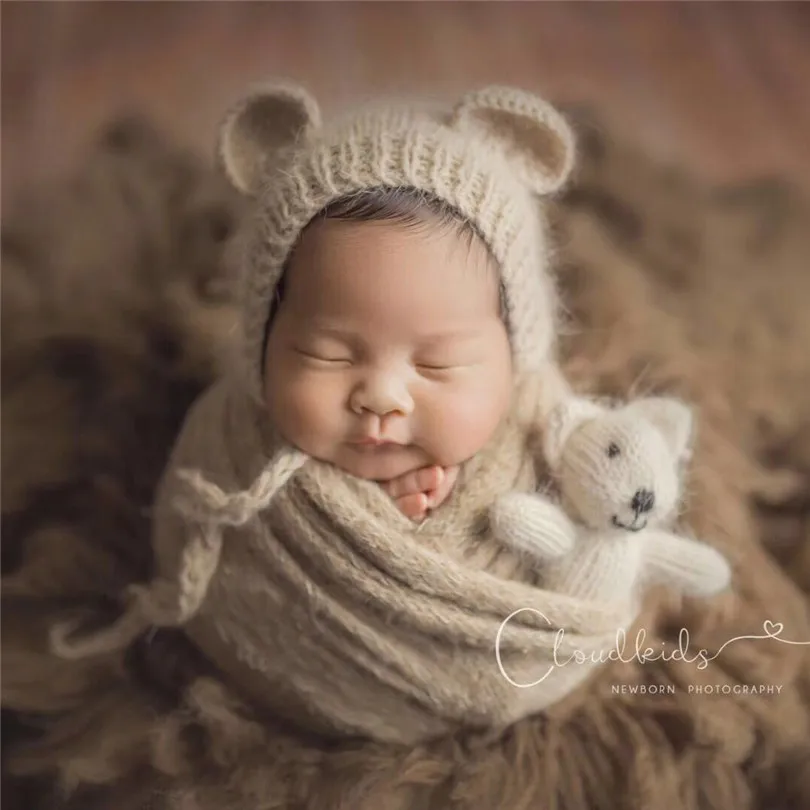 ORIGINAL Fluffy Tiny Cat Toy Bonnet Set for Photography Shoot Fuzzy Kitty Stuffed Animal Toy Doll with Croch