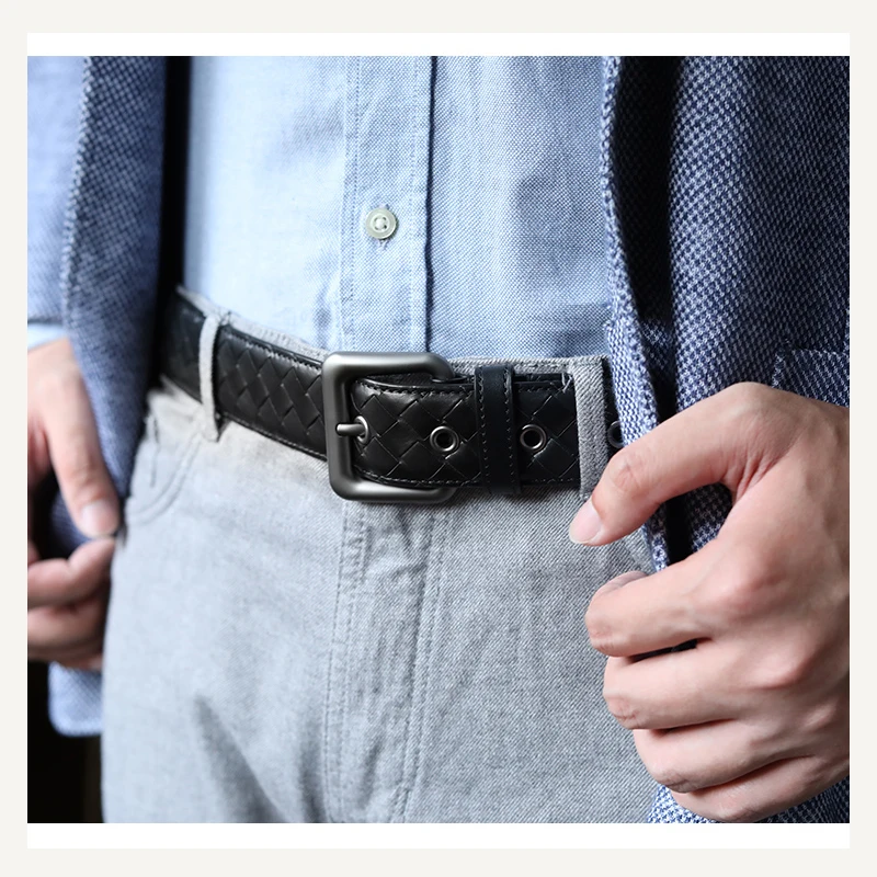 Men's Belt 100% Baby Cow Leather Woven Luxury Brand Business Classic Fashion Simple High-End Alloy
