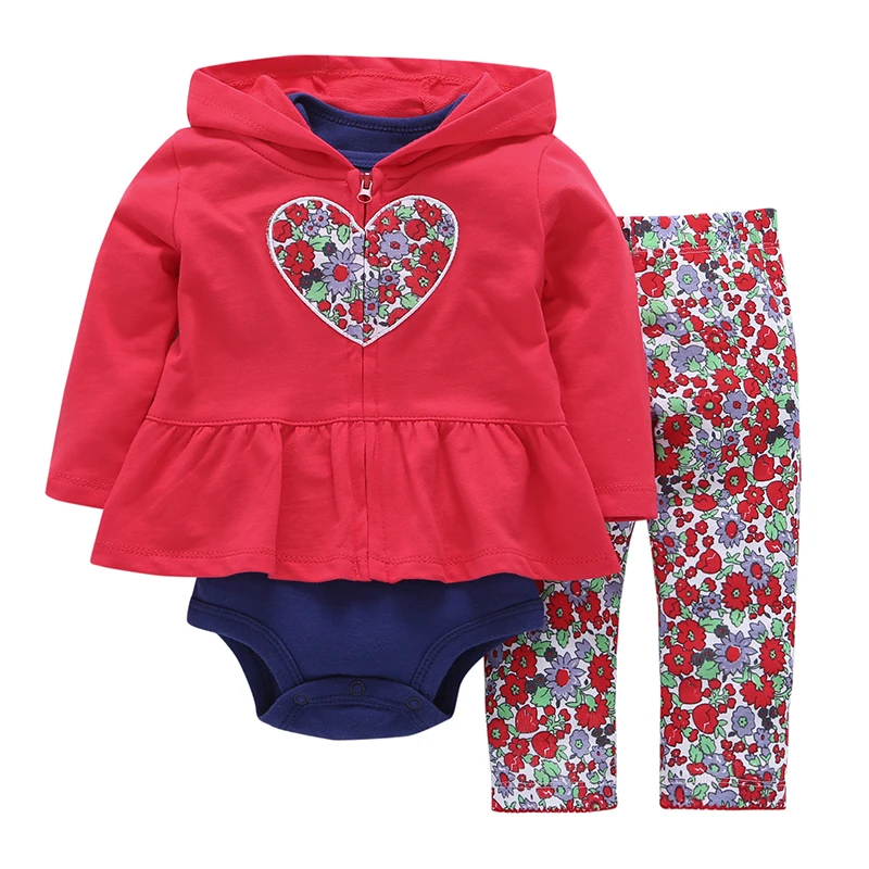 New Brand 3 Pieces Sets Fashion 2020 Baby Boy Girl's Style Regualr Full Sleeve Heart Hooded Coat+o-