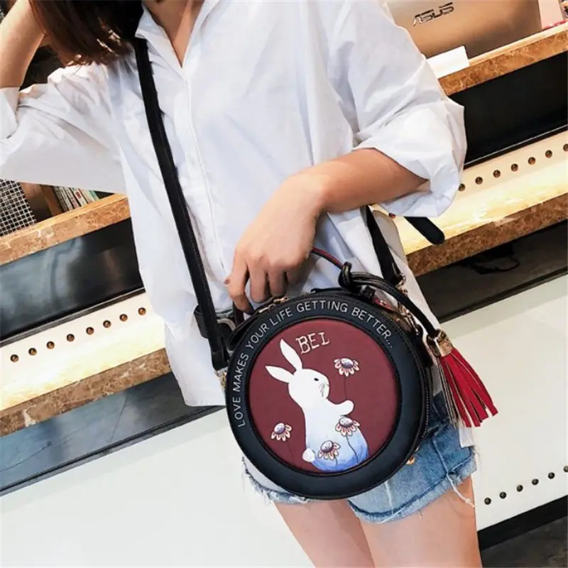 Bag 2018 Fashion New Handbag High quality PU Leather Shiny Cute Round Bag Shoulder luxury mobile Me