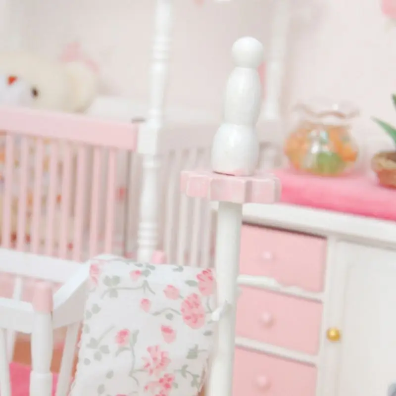 BEST QUALITY 1Set 1:12 Dollhouse Miniature Wood Furniture Kids Baby Room Bed Cabinet Dress Hanging New