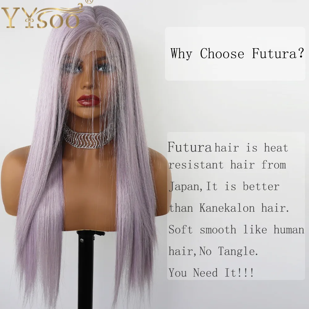 ORIGINAL YYsoo Long Mixed Highlights Futura Lace Front Wigs For White Women 13x6 Silky Straight Glueless Syn