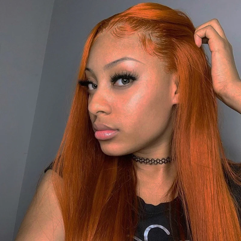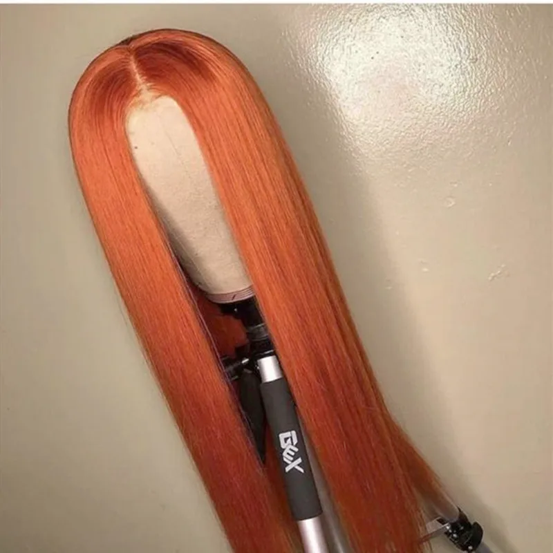BEST QUALITY 13x6 Deep Part Straight Orange Color Lace front Human Hair Wigs Pre Plucked hairline Brazilian Remy