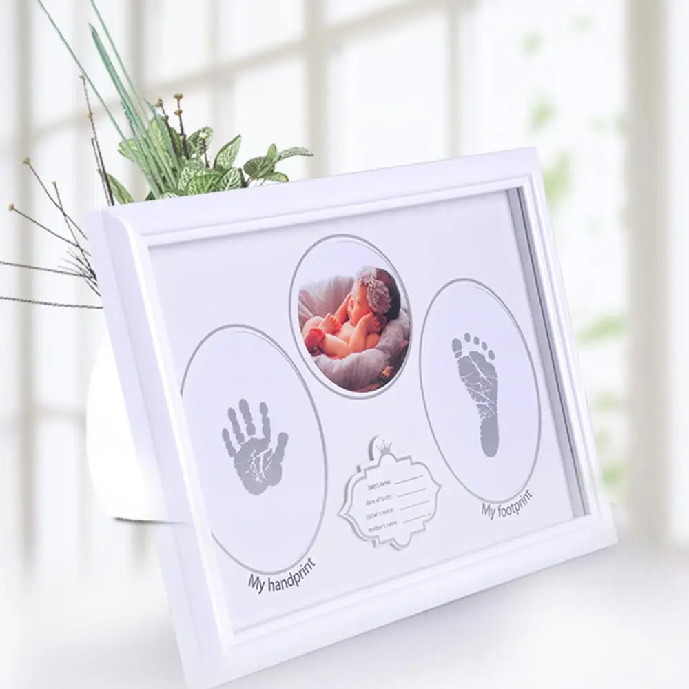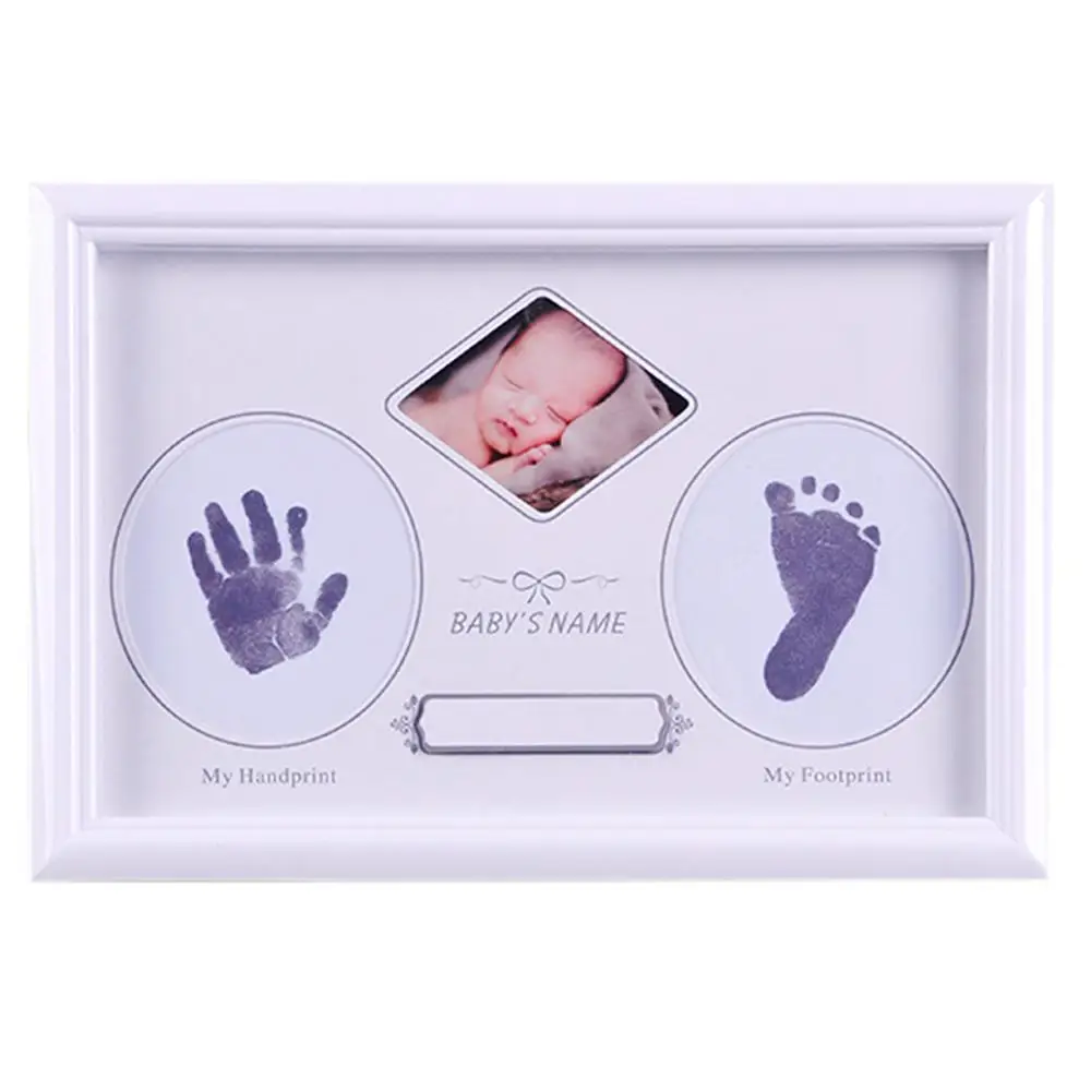 Baby Newborn Hand and Foot Prints Full Moon Hundred Days Infants Commemorative Frame Wooden Photo F